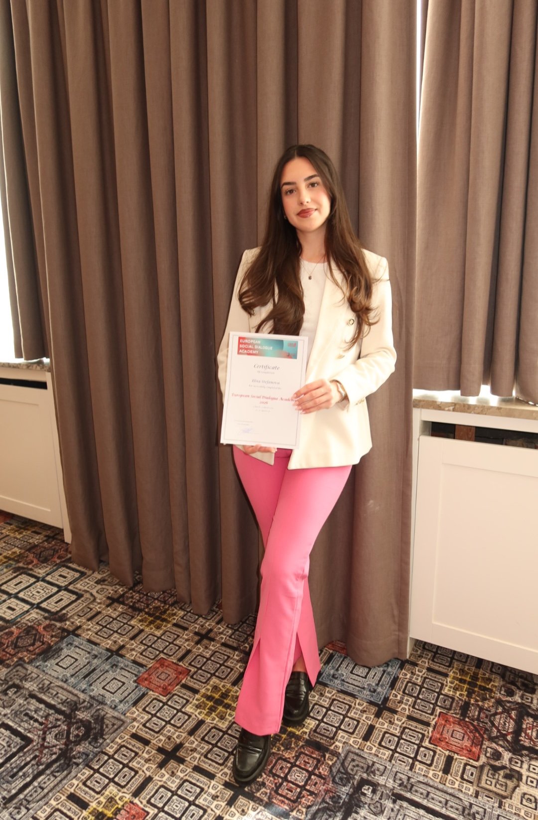След успешното участие в първата част на European Social Dialogue Academy, Съюзът на транспортните синдикати в България финализира обучението по европейски социален диалог с участие във втората сесия, проведена на 16–17 април. Представител на СТСБ бе Елина Стефанова, която се включи в работата на академията заедно със синдикални представители от цяла Европа. В рамките на програмата бяха обсъдени бъдещите теми в социалния диалог на европейско ниво, проведоха се срещи с представители на European Commission и работодателските организации, както и практически сесии и симулации на реални преговорни процеси. Успешното завършване на обучението бе отбелязано с връчване на сертификат, което е признание за ангажираността и стремежа на СТСБ към развитие и активно участие в европейските процеси. Натрупаният опит и знания ще допринесат за още по-ефективно участие на СТСБ в социалния диалог и защита на интересите на работещите в транспортния сектор. Останете свързани с нас и следете официалния уебсайт на СТСБ за още новини и актуална информация.